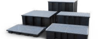 - Almacén con 2 IBC de 1.000 L y 12 bidones de 200 L → Cubetos de retención modulares con rejilla, compatible con carretilla. Entrega en 72 h.